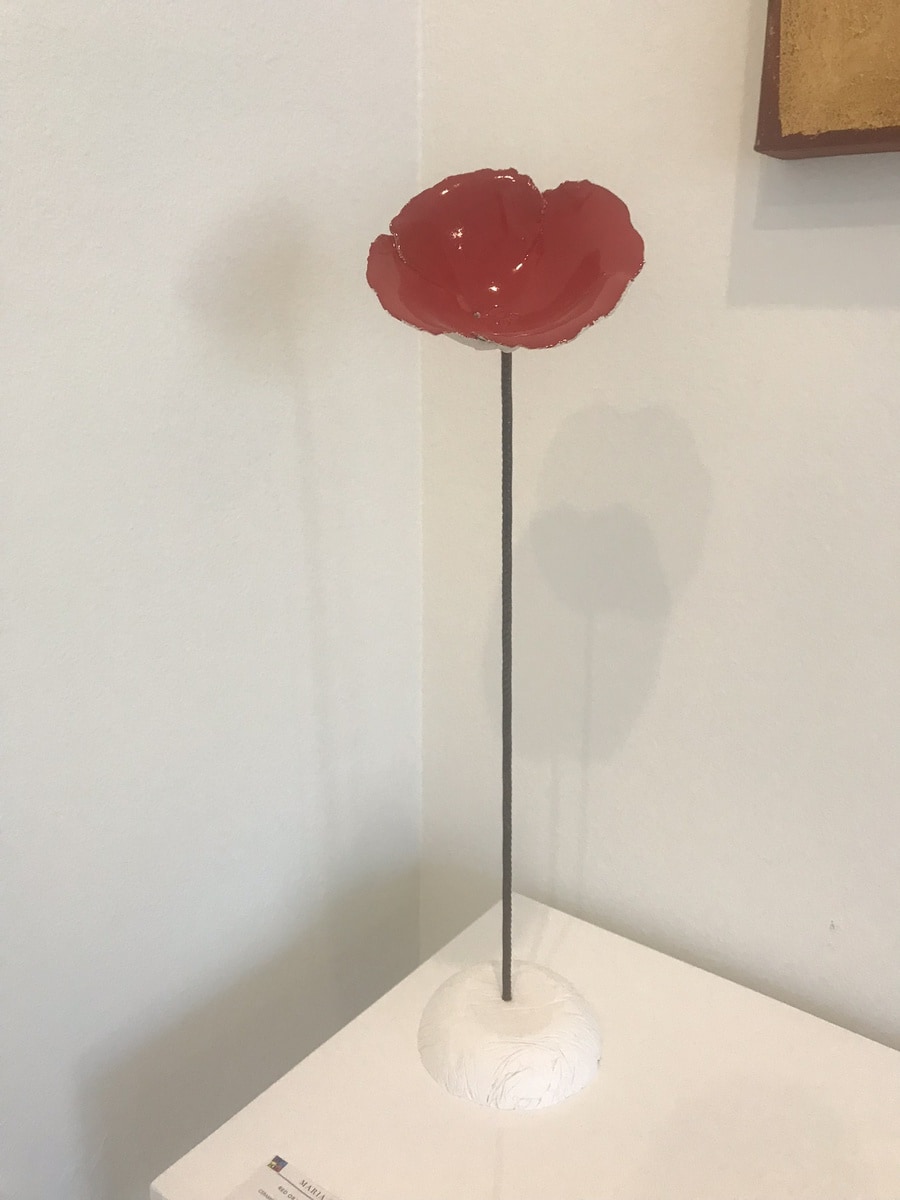 New Zealand artist Sian fills her studio, which has a smashing view as far as Africa, with many colourful wall sculptors. When I first got to know her in Gaucín she and her husband had shortly settled in Spain, coming from Australia. Then her exhibition room was filled with paintings on paper inspired by the floating movement of the sea. Since in Spain she is incorporating the mountainous landscape into wall sculptures of stone and glass, that reflect the hardness and eternity of the mountains. Her love for the floating forms you find in this sculptures, that appear different with changing light and as well in her Flamenco paintings, which she exhibits as well.