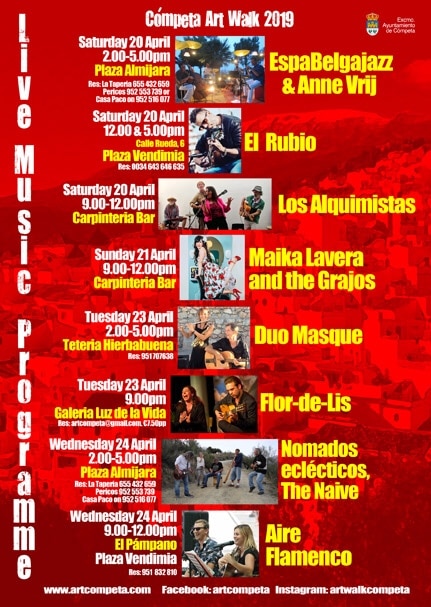 Invited guest artist this year is Spanish painter Marta Bernard, Master’s in Advertising Creativity, Design and Communication and more, is actually living in Estepona. She shares her pleasure of this area through her paintings with us. Marta’s paintings show bright colours and the momentum in the works. She also demonstrated her swing to us with a little dance in front of her paintings.