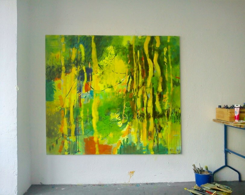 Starting a new painting is always somehow exiting – at least for me. I never know where this journey will lead me to – and seldom I make plans which I then will not follow. In the end my start is always fed by the impulse of the moment. The most I have in mind is a color direction. Maybe there is even a theme deep back in my more unconscious brain.