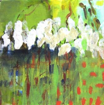 Pomona – some summers I spend with other artist on a vineyard in Tuscani. Acryl on Canvas, 5 x 30×30 cm
