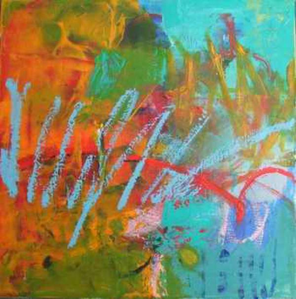 The seasons….one of my older works, Acrylic on Cavas, worked with a spatula on a black ground.