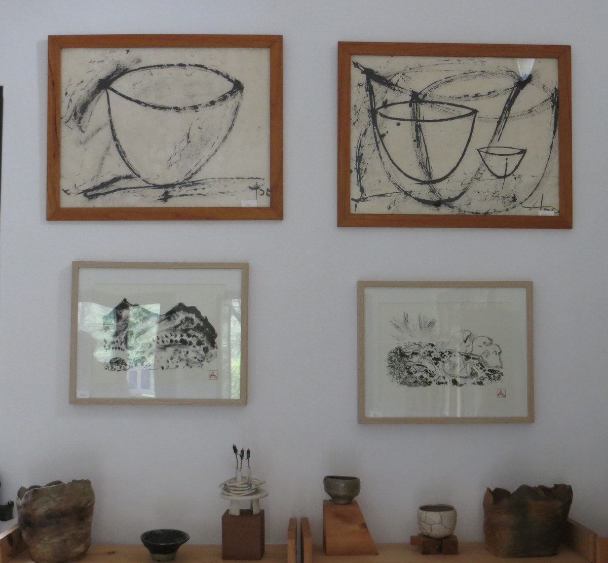 Our first stop -Nr.17 – is the valley outside the village and leads us to the ceramics, sculpzures and wood prints of Anna McGrane. On a charming piece of land with beautiful views and colorful wooden furniture on the terrace we are greeted by the Irish artist Anna and her dog and led down a gravel path to the little house that contains her studio .