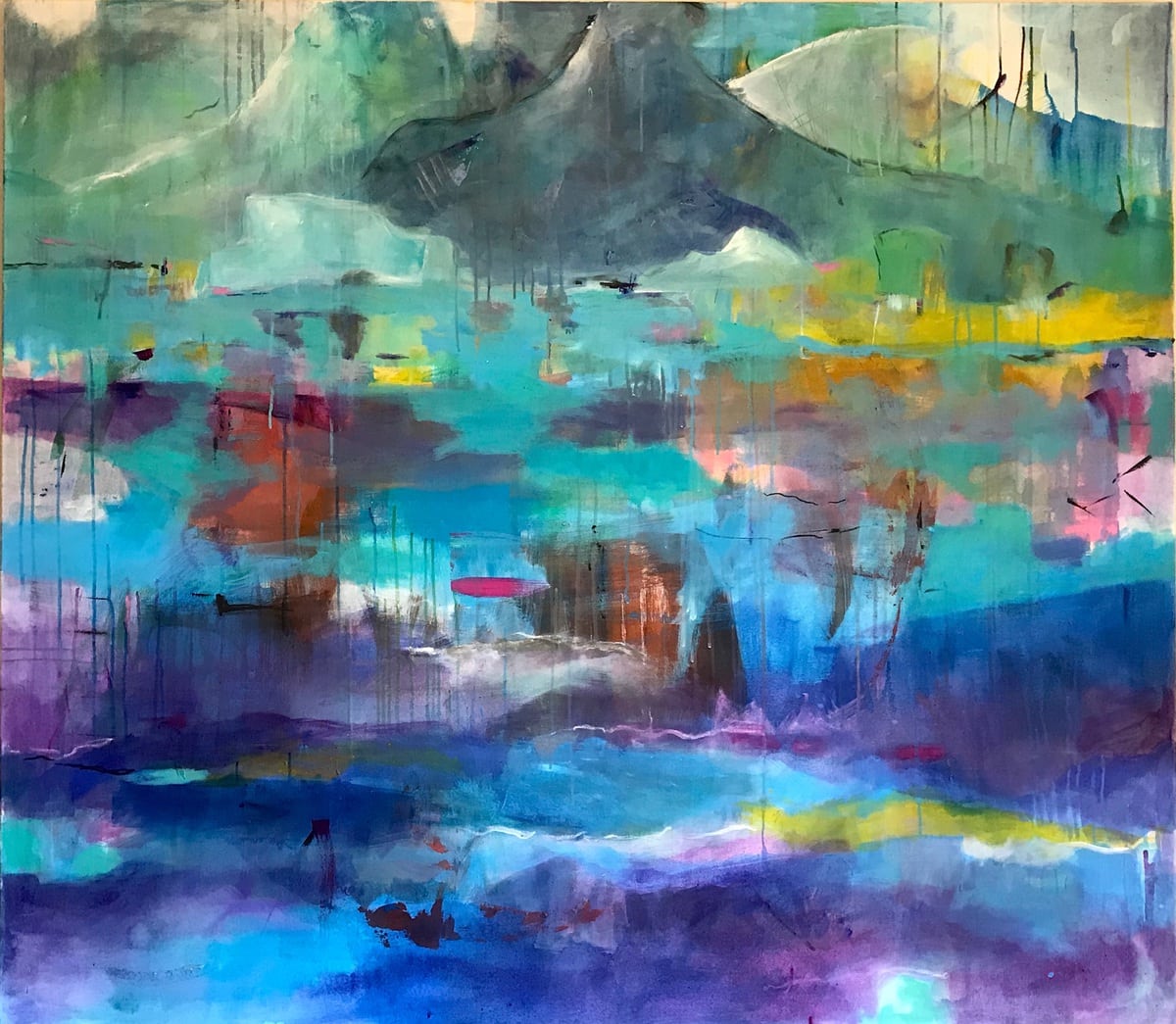 Jenny is a newbie to the Open Studios Gaucรญn but not a newbie to the village of Gaucรญn, where she lives since more than 6 years. This is her first appearance in the Open Studios. I really enjoy to see some new artist and their works. Jenny has a history of being a Goldsmith and a photographer. After following a small, a bit hidden and somewhat enchanted path we find her small studio, where she presents her paintings which are characterised by kind of geometric structures.